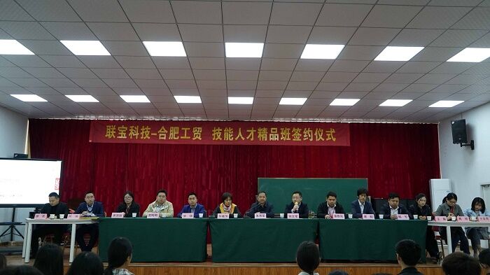 2019年4月2日,合肥工贸高级技工学校与联宝(合肥)电子科技有限公司校企合作之精品班举行开班仪式。出席本次仪式的有省人社厅职业能力建设处领导,合肥工贸高级技工学校领导和联宝电子科技有限公司领导。开班仪式上省厅领导、校方领导和公司领导分别进行了发言,合肥联宝的项目经理给同学们进行了教学培养计划的讲解,精品班的学生代表也上台发言并宣誓,表示同学们会明确目标,端正态度。在学习过程中做到严格要求自己,遵守纪律,服从管理,通过学用结合,使自己学有所得,学有所获。最后,校企双方进行了精品班签约和授牌仪式。