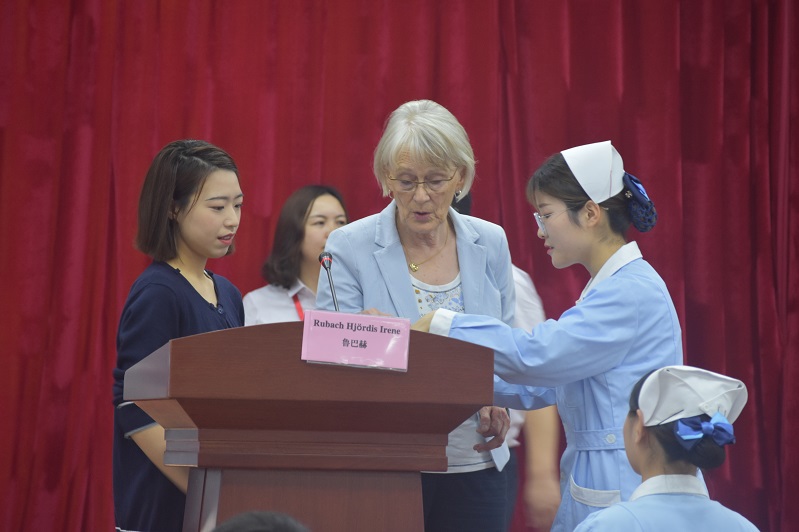 5月17日上午,在省厅及学校领导的陪同下,德国养老护理专家鲁巴赫女士,参观了护理实训室的教学场地、教学设备,并对我校在第45届世界技能大赛中国选拔赛和护理技能大赛中取得的优秀成绩赞不绝口。