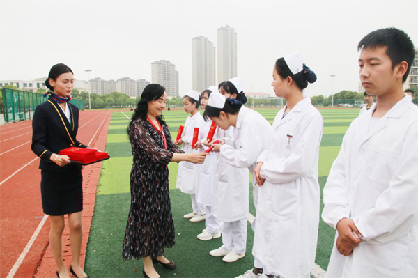 授帽仪式是最令人期待的环节,仪式上,“南丁格尔”缓缓走出,在烛光的映射下显得端庄美丽,护理老师为每位同学授帽,每位被授予燕尾帽的同学在“南丁格尔”手中点燃蜡烛,象征着薪火相传的精神,在老师的带领下,全体同学庄重宣誓,一句句掷地有声的南丁格尔誓言在闪烁的烛光中荡漾,也净化着现场所有师生的心灵。牢记南丁格尔“终身纯洁,忠贞职守”的誓言,励志践行“燃烧自己,照亮他人”的南丁格尔精神。