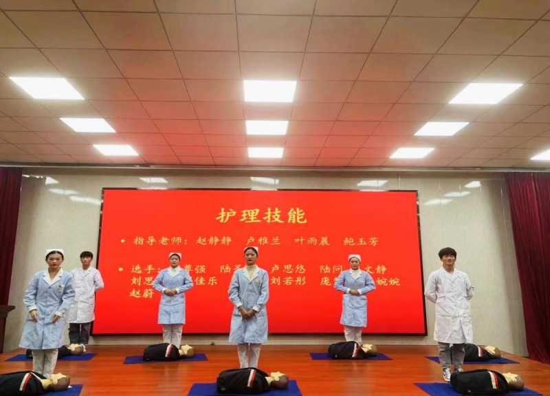 最后在学校大礼堂中国舞、硬笔书法、平面设计和护理技能等项目进行了展示。