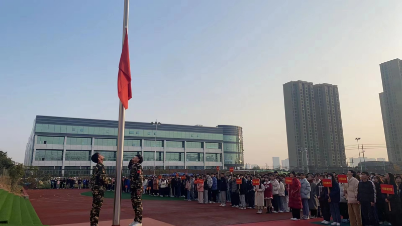 12.13日上午8时整,伴随着义勇军进行曲,五星红旗徐徐升起,全体师生行注目礼。鲜艳国旗在风中飘扬,不肯低下头,时刻提醒我们这些后人,他是由无数先辈用鲜血染成的,激励我们坚强面对困难。
