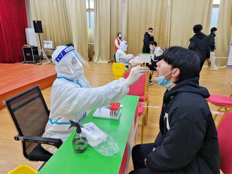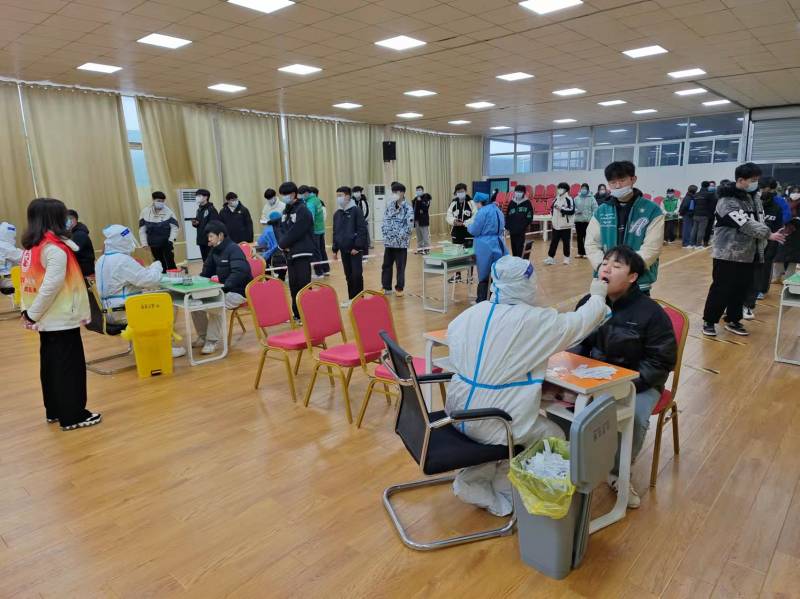 我校在接到核酸检测任务后,积极响应,立即开始着手部署,于02月18日上午8时推开全校师生的核酸检测工作。期间,学校保卫、总务等多部门联动,现场在老师和学生志愿者的指挥引导下,全体师生主动配合,佩戴口罩,保持一米间距,依次扫码、测温、登记、采样,整个过程井然有序。