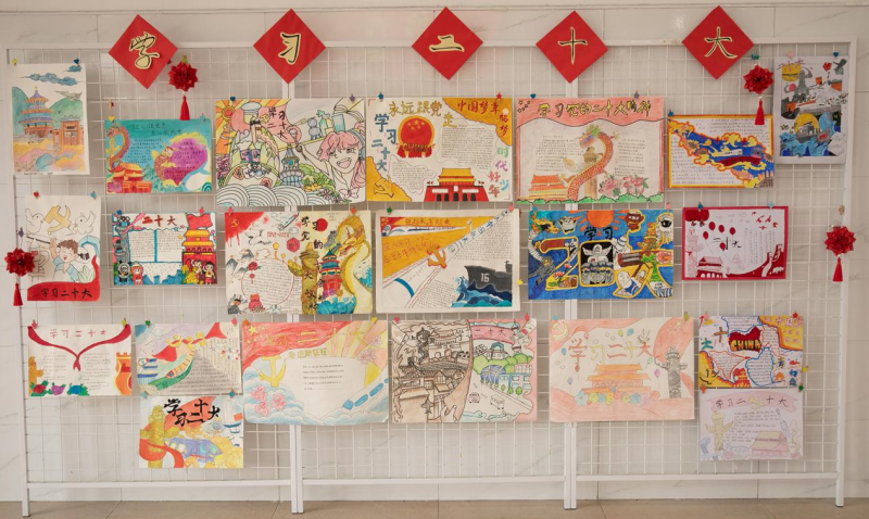 为丰富学生的文化生活,坚守立德树人,牢记为党育人、为国育才的历史使命和责任担当,不断拓宽青少年爱国主义教育载体,引领广大学生以饱满的热情学习二十大精神,我校汤口路校区开展了“学习二十大、永远跟党走、奋进新征程”主题手抄报绘制活动。积极响应二十大精神,用一笔一画描绘对党的热爱和崇高敬意。