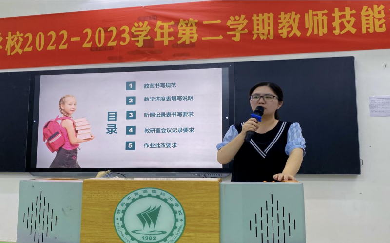 教务处赵主任开展了《规范教学》讲座。紧紧围绕“规范化教学”主题,从书写教案、批改作业等教学过程中常见的问题进行了讲解,并提出了要求,号召全体教师要规范化教学。
