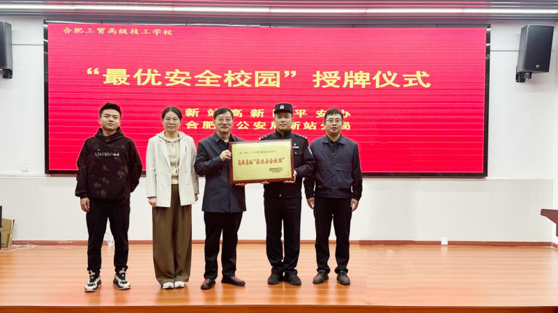 近日,合肥新站高新区平安办与合肥市公安局新站分局联合授予合肥工贸高级技工学校2024年上半年度合肥新站高教基地“最优安全校园”荣誉称号。