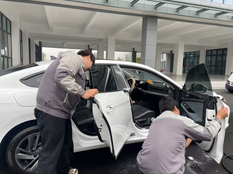 活动现场,学生们分工协作,展现职业技能素养,一辆辆沾满灰尘的车经学生们的巧手“焕然一新”。“孩子们不仅洗得干净,还帮着检查了胎压,太专业了!”学校老师纷纷竖起大拇指。