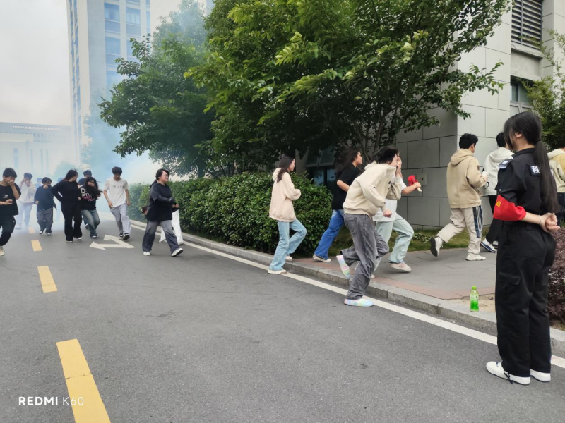 伴随应急防空警报声骤然响起,校园内迅速弥漫起模拟烟雾,全体师生按照既定的应急疏散预案,低姿前行,快速而有序地从教学楼、实训楼等场所撤离至安全区域。整个疏散过程中师生们反应迅速、行动规范,各班级负责人认真履职,保障了疏散工作的高效进行,切实检验了学校应急处置能力和师生的应急逃生技能。