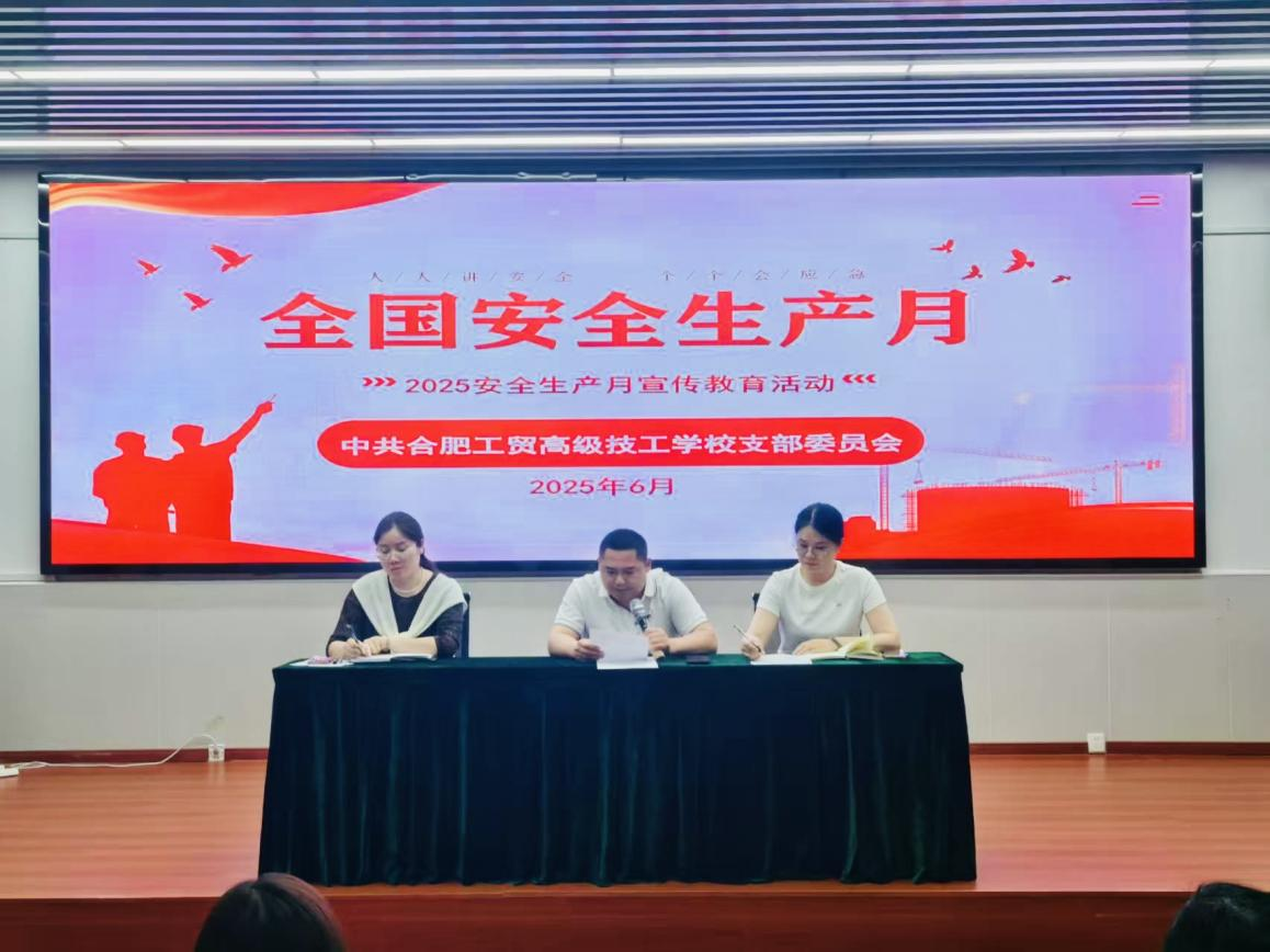 为深入贯彻合肥市人社局“安全生产月”部署要求,6月10日上午,合肥工贸高级技工学校召开全体教师安全工作会议,全面启动以“人人讲安全、个个会应急——查找身边安全隐患”为主题的专项活动。校长徐胜乐主持会议并作重点工作部署。