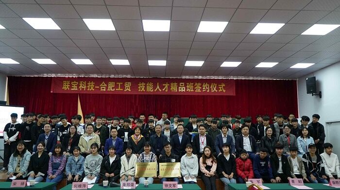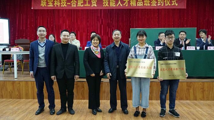 2019年4月2日,合肥工贸高级技工学校与联宝(合肥)电子科技有限公司校企合作之精品班举行开班仪式。出席本次仪式的有省人社厅职业能力建设处领导,合肥工贸高级技工学校领导和联宝电子科技有限公司领导。开班仪式上省厅领导、校方领导和公司领导分别进行了发言,合肥联宝的项目经理给同学们进行了教学培养计划的讲解,精品班的学生代表也上台发言并宣誓,表示同学们会明确目标,端正态度。在学习过程中做到严格要求自己,遵守纪律,服从管理,通过学用结合,使自己学有所得,学有所获。最后,校企双方进行了精品班签约和授牌仪式。