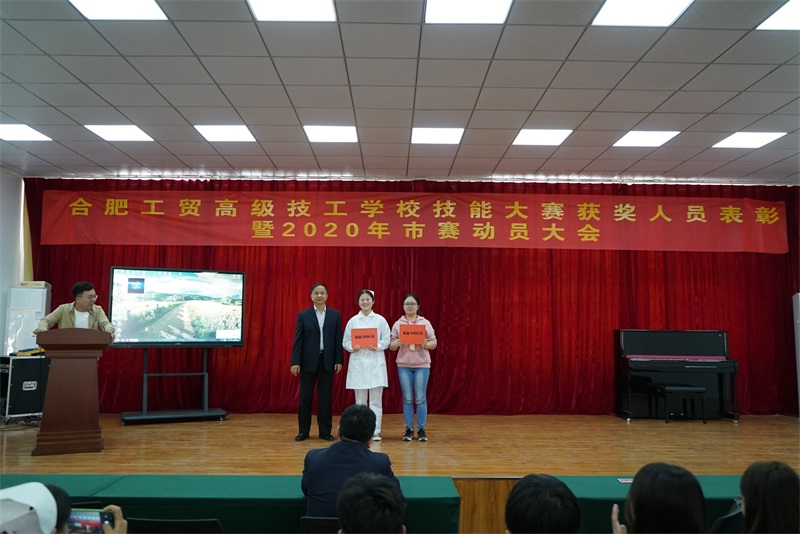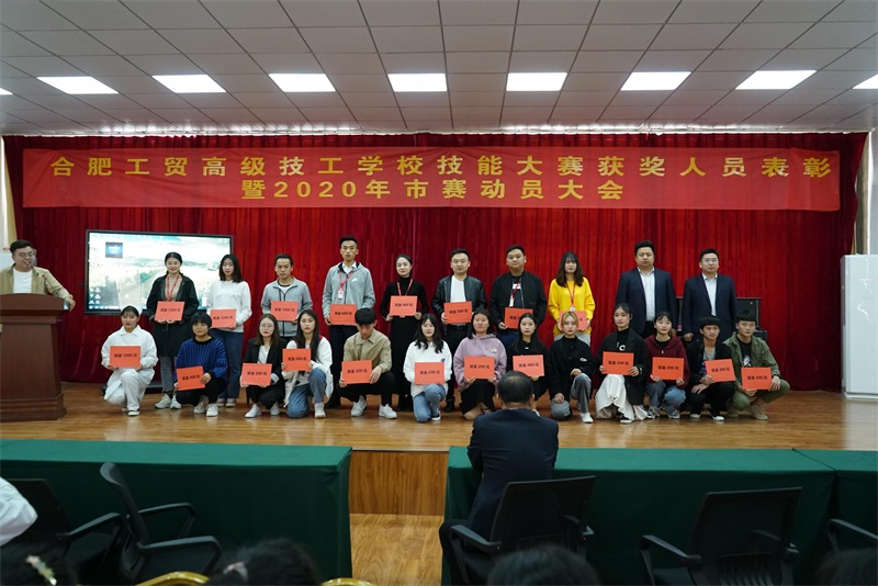 2019年10月31日下午,合肥工贸高级技工学校隆重举行2018年度技能大赛获奖人员表彰暨2020年市赛动员大会。校领导班子出席会议,各参赛系部(主任)、各赛项指导教师及选手参会。大会对2019年大赛获奖选手及指导教师进行表彰,并对2020年选手进行动员。