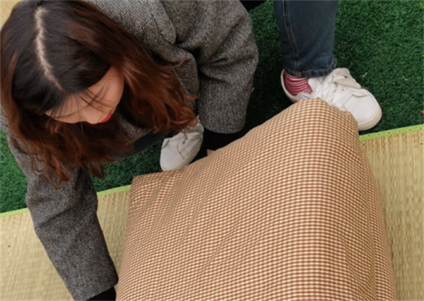 在老师们的指导下,原本散乱的被子瞬间变成了方方正正的“豆腐块”,整个操场上洋溢着热情的气氛,同学们也露出了快乐的笑脸。