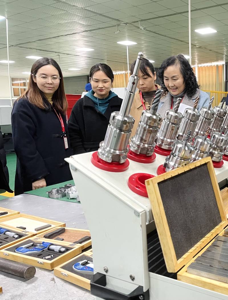首先展示的是位于大师工作室的零部件测绘与CAD成图技术项目,接着观看了机械车间的综合车削加工技术和综合铣削加工技术项目。各项目积极展示选手们平时训练的成果和作品,选手们精神饱满,充满激情。