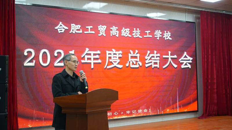 校长徐胜乐同志则从党建、防疫、师资队伍建设、校园安全、招生、教学、竞赛、培训、就业等十八个方面做了2021年度工作总结,并对2022年工作进行展望,他表示,2022年学校将继续坚持以习近平新时代中国特色社会主义思想为指导,树牢“四个意识”,坚定“四个自信”,坚决做到“两个维护”,坚决贯彻“德技兼修”、“多元发展”、“校企合作”、“提质培优”技工教育发展规划,努力为合肥市经济建设培养更多高质量技能人才。