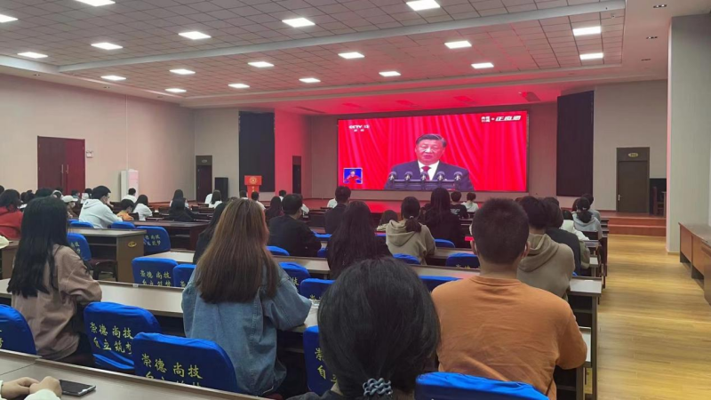 在大礼堂、教室、宿舍……师生观看直播后,心潮澎湃,精神振奋,对党和国家过去五年的工作和新时代十年的伟大变革、伟大成就感到震撼,对全面建设社会主义现代化国家充满期冀,对实现中华民族伟大复兴充满信心,表示将以党的二十大精神为指引,凝聚共识,汇聚力量,画出最大同心圆,推动学校事业发展,为实现中华民族伟大复兴的中国梦作出积极贡献。