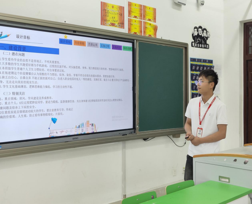 在班主任赛比赛现场,参赛老师们分别从教育理念、学情分析、治班策略和班级建设成果等方面进行展示。选手们准备充分,策略具有时代性与实效性,充分体现为党育人、为国育才的教育使命。