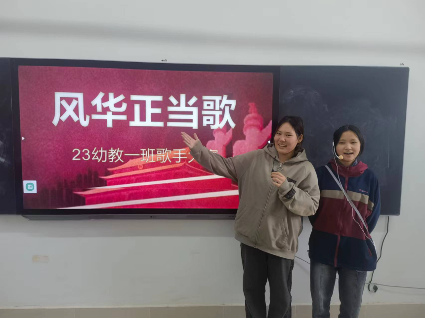 23级幼教部分班级开展的“风华正当歌”班级歌手大赛是一场充满爱国情怀和青春活力的音乐盛宴。同学们以小组为单位,演唱了一系列积极向上的歌曲。比赛过程中,学生们精神饱满,声情并茂地演唱,展现了他们良好的音乐素养,其中张梦可同学演唱的《我和我的祖国》将此次活动推向了高潮,获得了全班同学的掌声。此次比赛不仅锻炼了学生的舞台表现力,增加了自信,还激发了他们的爱国热情和民族自豪感。