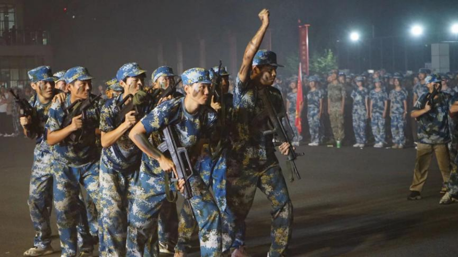 晚会以一场震撼人心的国防教育成果展演作为开场,瞬间点燃了现场的热情。新生们以整齐的队列、铿锵的步伐、嘹亮的口号,向全校师生展示了国防教育期间所铸就的钢铁意志和团队精神。战术展示中,他们如同真正的战士,动作敏捷、配合默契;十二生肖拳则巧妙地将传统文化与武术精髓相结合,展现出独特的魅力;韵律操与旗舞更是将青春活力与爱国情怀完美融合,赢得了阵阵喝彩。