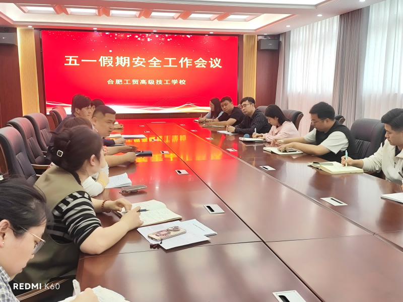 2025年4月28日上午,合肥工贸高级技工学校召开五一假期安全专题会议,校领导及全体中层干部参会。会议围绕假期安全管理、风险防控及责任落实等议题进行部署,全面筑牢校园安全防线。