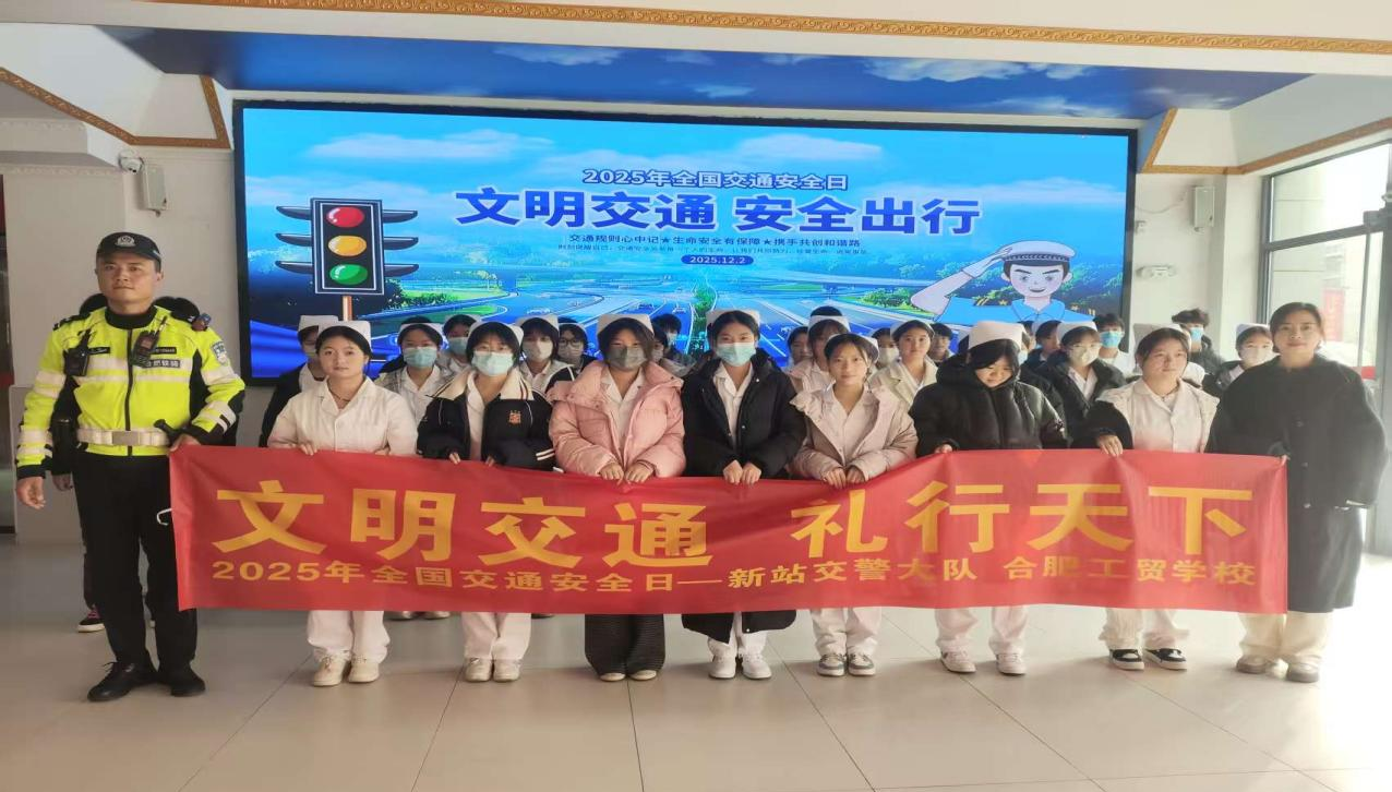 2025年12月2日,在第14个“全国交通安全日”到来之际,为进一步增强广大师生的交通安全意识,营造安全、文明、和谐的校园交通环境,新站交警大队走进合肥工贸高级技工学校,围绕“文明交通 礼行天下”主题,开展了一场生动而富有教育意义的交通安全宣传活动。